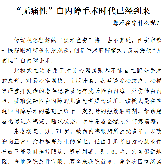 “无痛性”白内障手术时代已经到来 —您还在等什么呢?