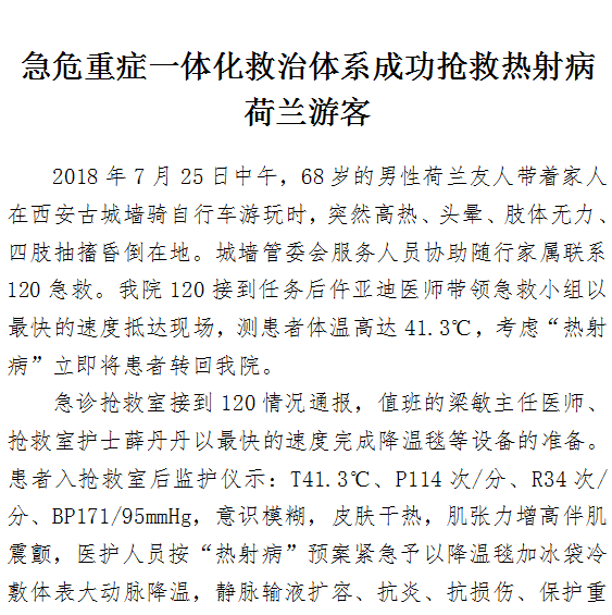 急危重症一体化救治体系成功抢救热射病荷兰游客