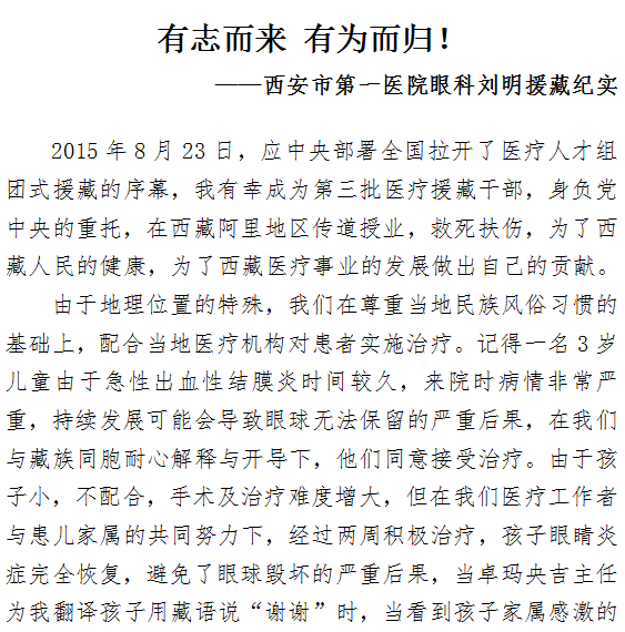 有志而来 有为而归! ——探花av 眼科刘明援藏纪实