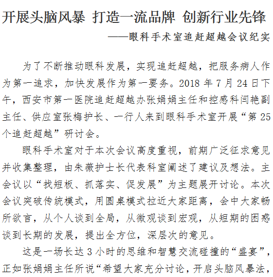 开展头脑风暴 打造一流品牌 创新行业先锋 ——眼科手术室追赶超越会议纪实