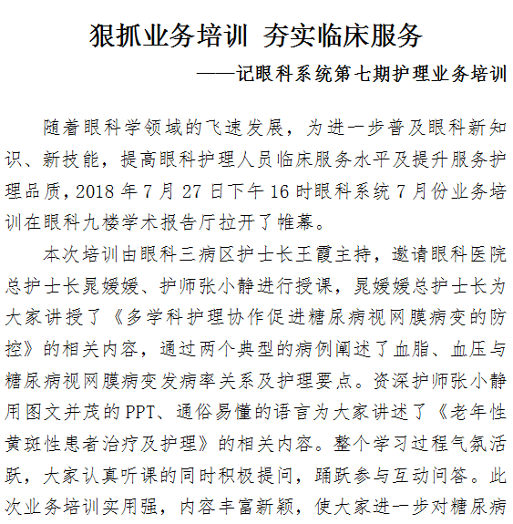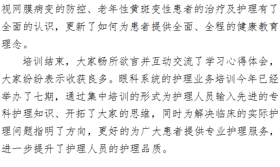 狠抓业务培训 夯实临床服务 ——记眼科系统第七期护理业务培训