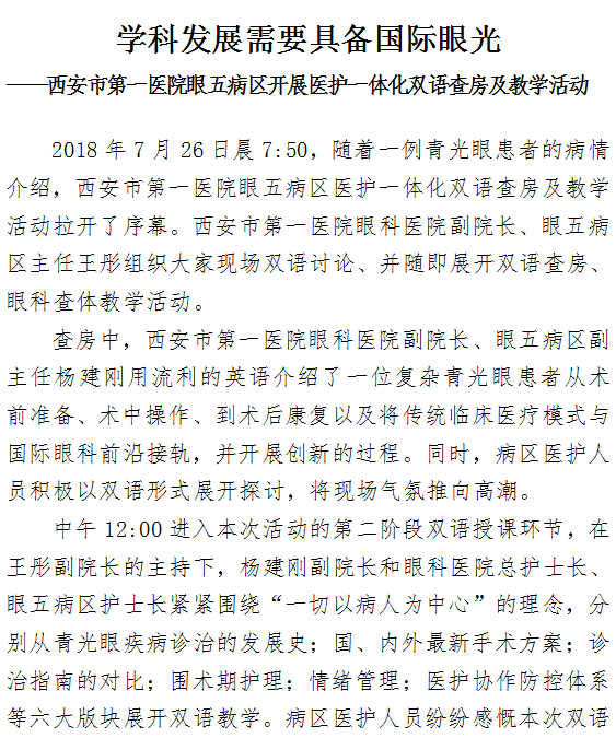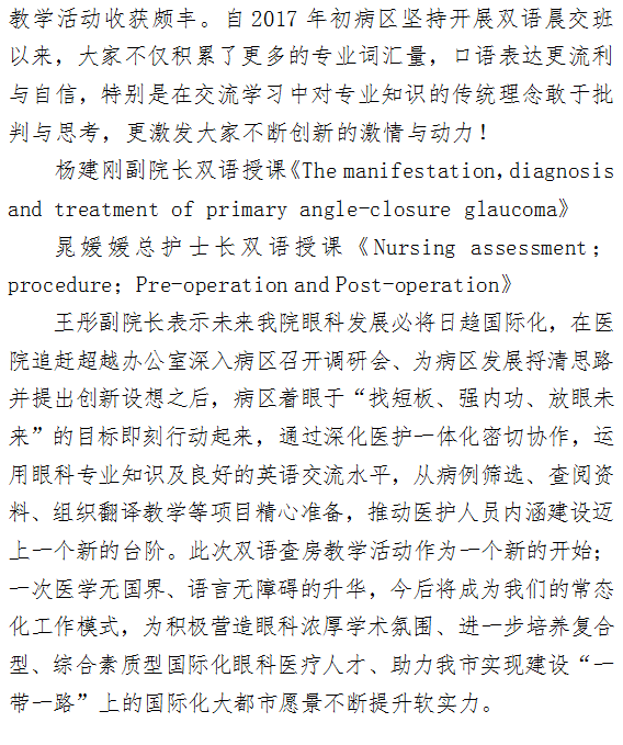 学科发展要具备国际眼光—探花av 眼五病区开展医护一体化双语查房及教学活动