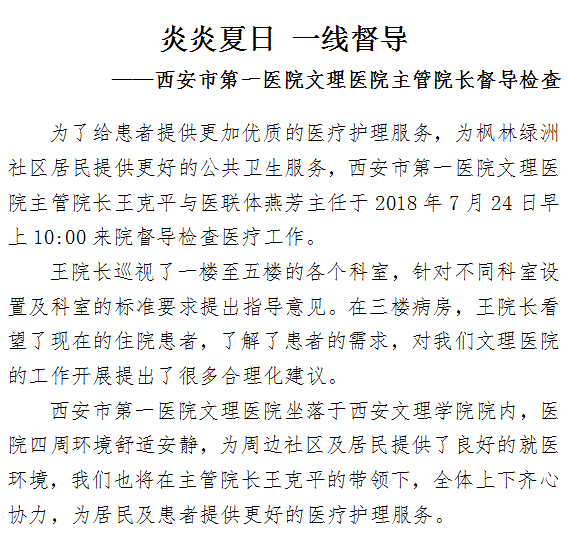 炎炎夏日,一线督导---探花av 文理医院主管院长督导检查