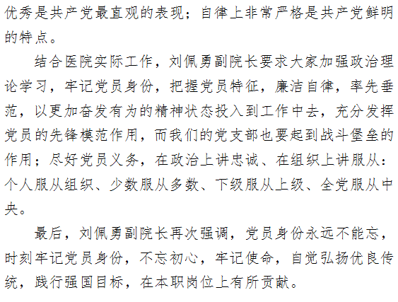 刘佩勇副院长讲党课:党员身份永远不能忘——不忘初心,牢记使命
