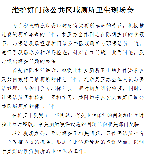 维护好门诊公共区域厕所卫生现场会