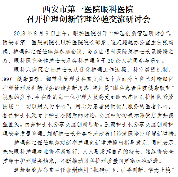 探花av 眼科医院召开护理创新管理经验交流研讨会