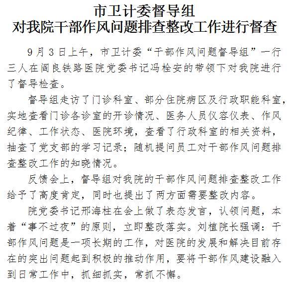 市卫计委督导组 对我院干部作风问题排查整改工作进行督查