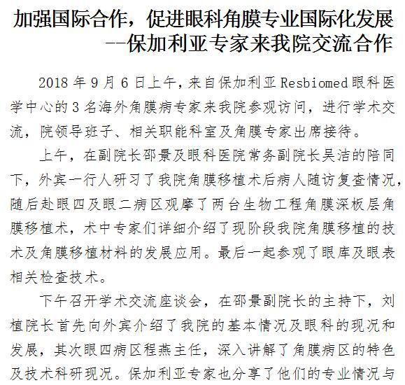 加强国际合作,促进眼科角膜专业国际化发展--保加利亚专家来我院交流合作