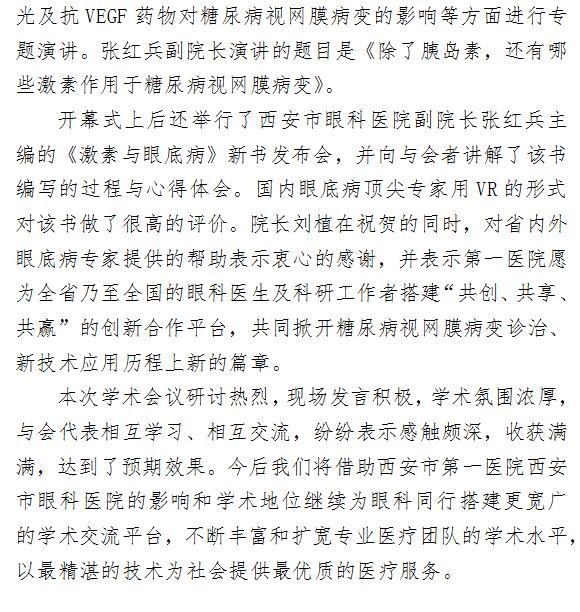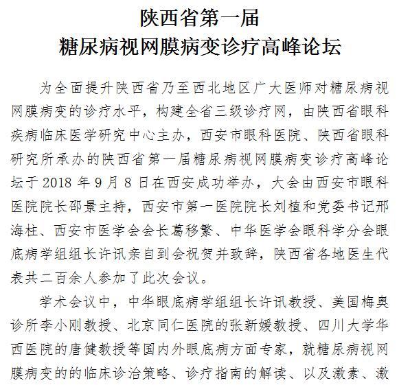 陕西省第一届糖尿病视网膜病变诊疗高峰论坛