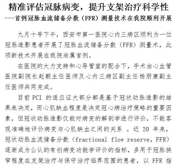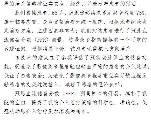 精准评估冠脉病变,提升支架治疗科学性---首例冠脉血流储备分数(FFR)测量技术在我院顺