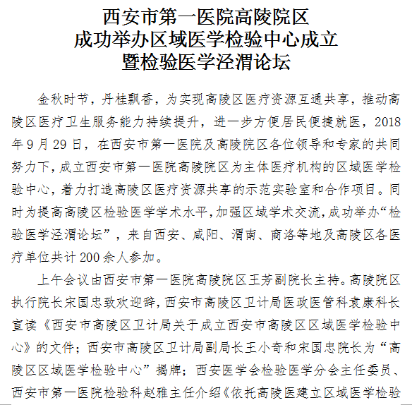 探花av 高陵院区成功举办区域医学检验中心成立暨检验医学泾渭论坛