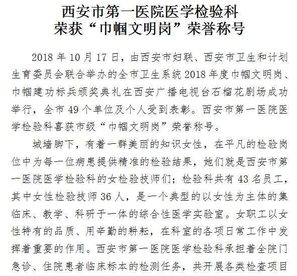 探花av 医学检验科荣获“巾帼文明岗”荣誉称号
