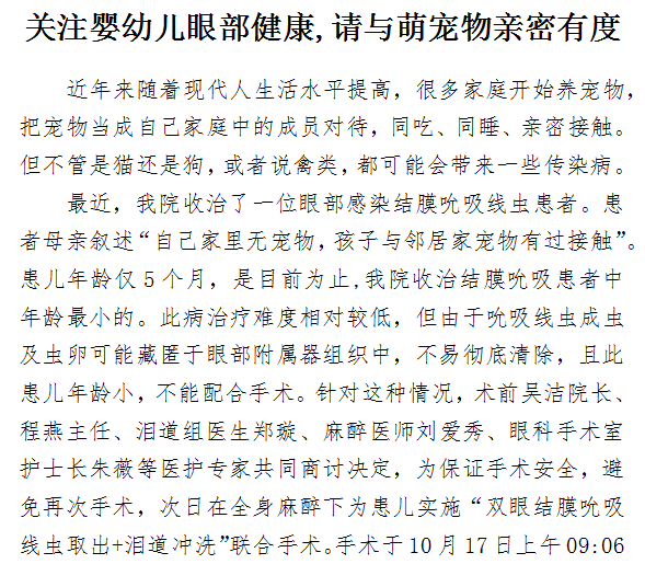 关注婴幼儿眼部健康,请与萌宠物亲密有度