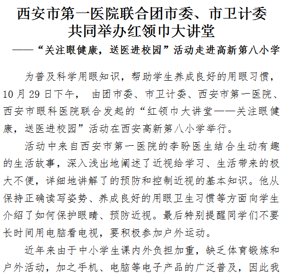 “关注眼健康,送医进校园”活动走进高新第八小学