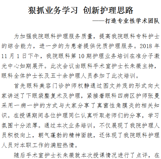 狠抓业务学习创新护理思路——打造专业性学术团队