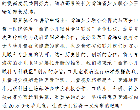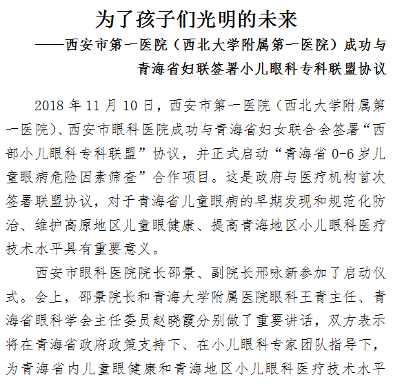 探花av (西北大学附属第一医院)成功与青海省妇联签署小儿眼科专科联盟协议