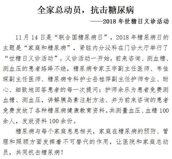 全家总动员,抗击糖尿病 ——2018年世糖日义诊活动