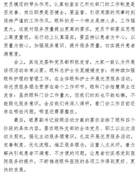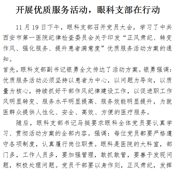 开展优质服务活动,眼科支部在行动