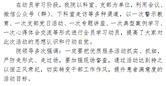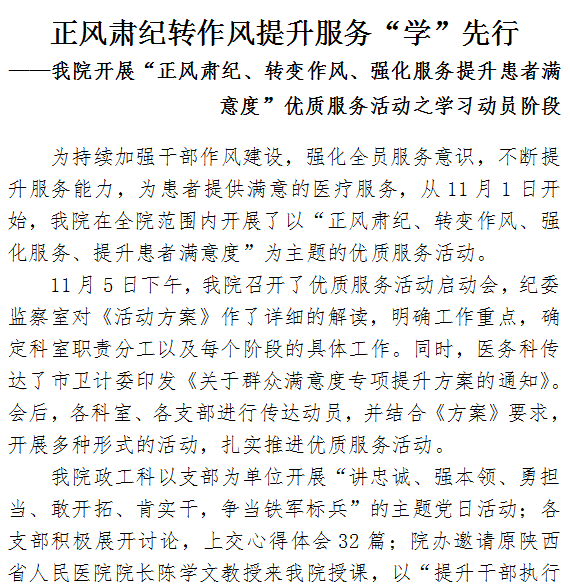 我院开展“正风肃纪、转变作风、强化服务提升患者满意度”优质服务活动—学习动员阶段