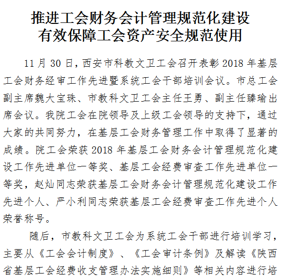 推进工会财务会计管理规范化建设 有效保障工会资产安全规范使用