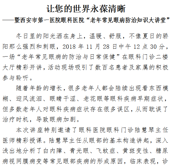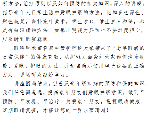 探花av 眼科医院“老年常见眼病防治知识大讲堂”