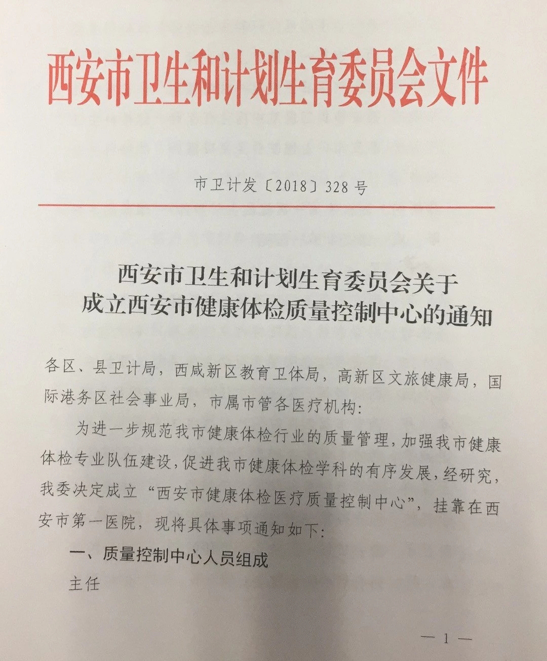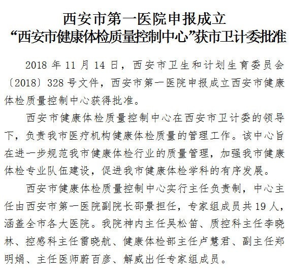 探花av 申报成立“西安市健康体检质量控制中心”获市卫计委批准