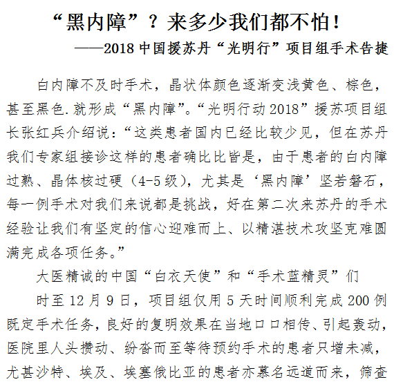 “黑内障”?来多少我们都不怕! ——2018中国援苏丹“光明行”项目组手术告捷