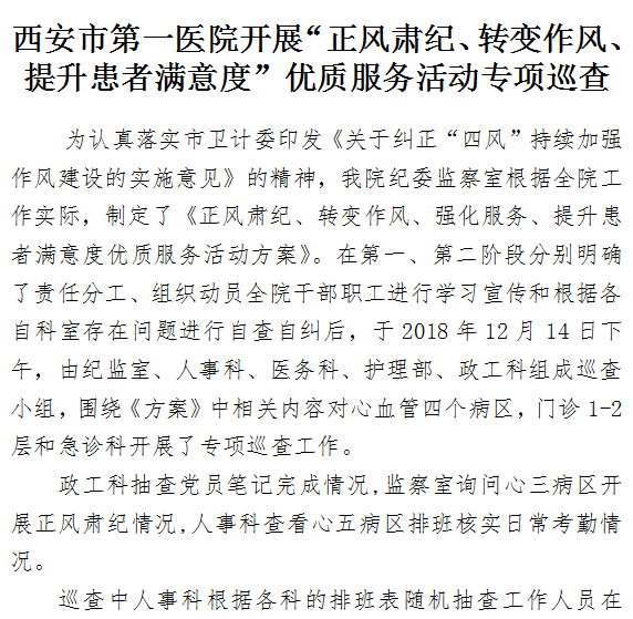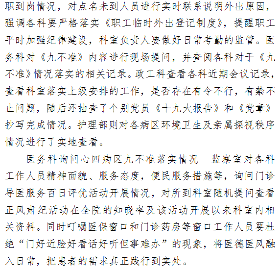 我院开展“正风肃纪、转变作风、提升患者满意度”优质服务活动专项巡查