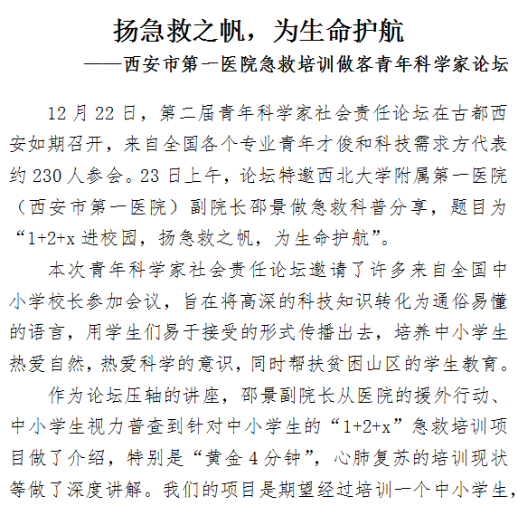 扬急救之帆,为生命护航 ——探花av 急救培训做客青年科学家论坛