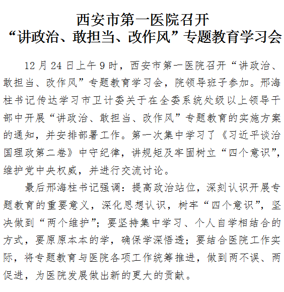 召开“讲政治、敢担当、改作风” 专题教育学习会