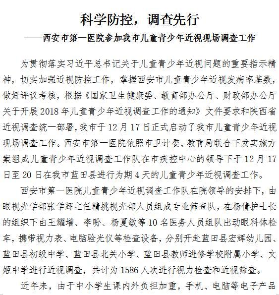 科学防控,调查先行 ——探花av 参加我市儿童青少年近视现场调查工作
