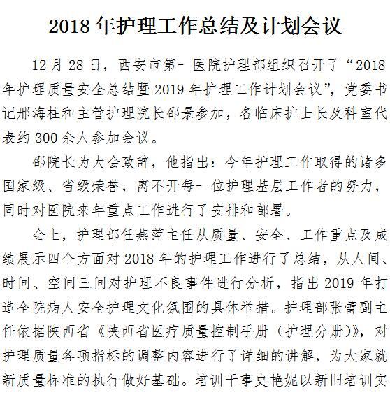 探花av 召开“2018年护理质量安全总结暨2019年护理工作计划会议”
