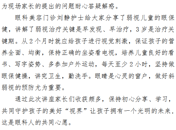 关爱宝贝眼健康,共同守护心灵窗 ——暨市一院眼科医院“斜弱视防治知识大讲堂”