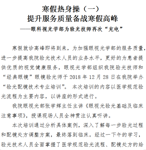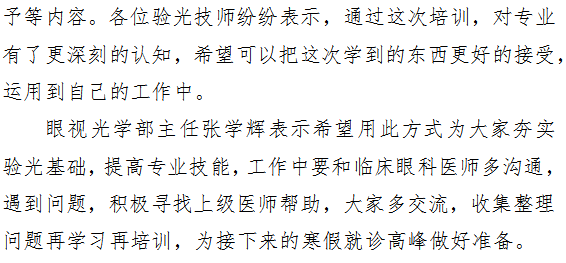 寒假热身操(一) 提升服务质量备战寒假高峰——眼科视光学部为验光技师再次“充电”
