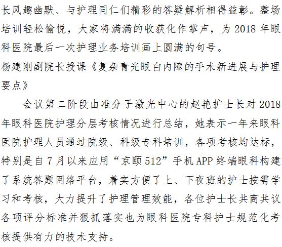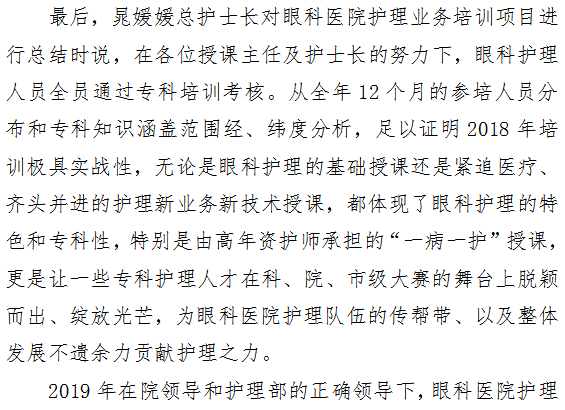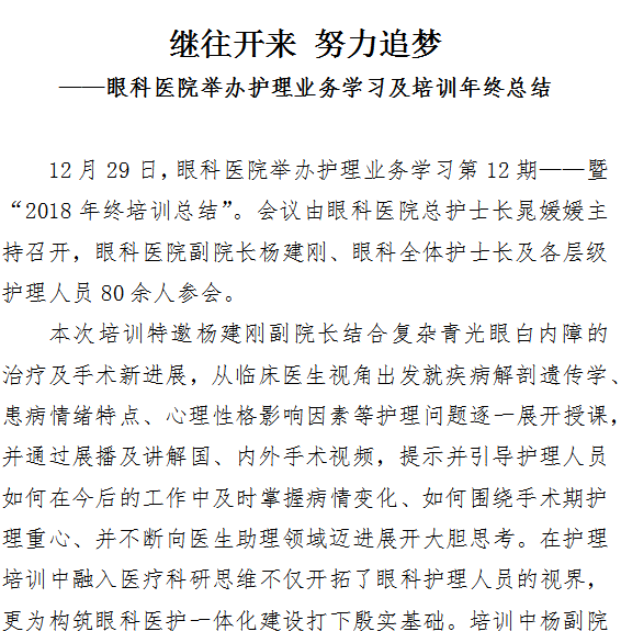 继往开来 努力追梦 ——眼科医院举办护理业务学习及培训年终总结