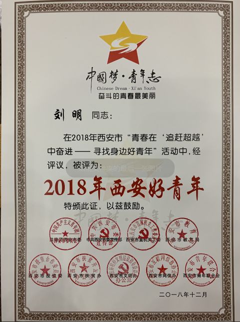 探花av 援藏干部刘明同志荣获“2018西安好青年”称号