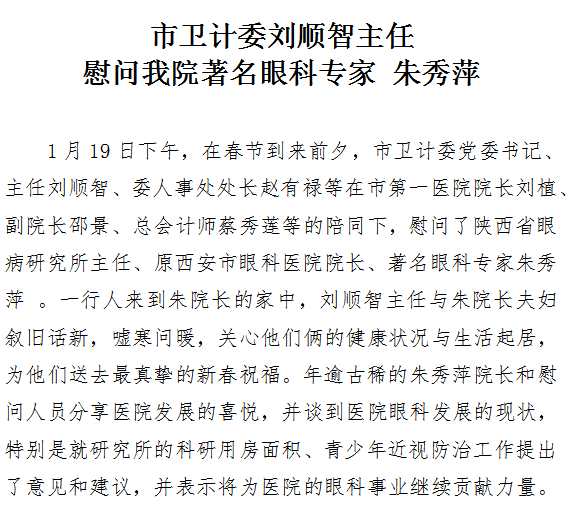 市卫计委刘顺智主任慰问我院著名眼科专家朱秀萍