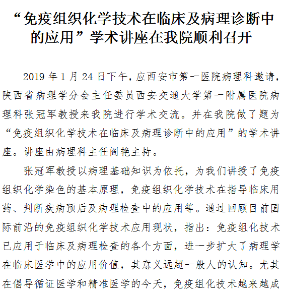 “免疫组织化学技术在临床及病理诊断中的应用”学术讲座在我院顺利召开