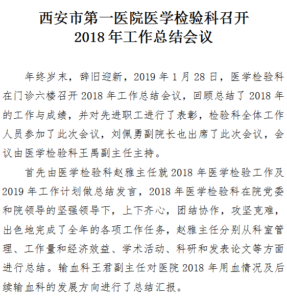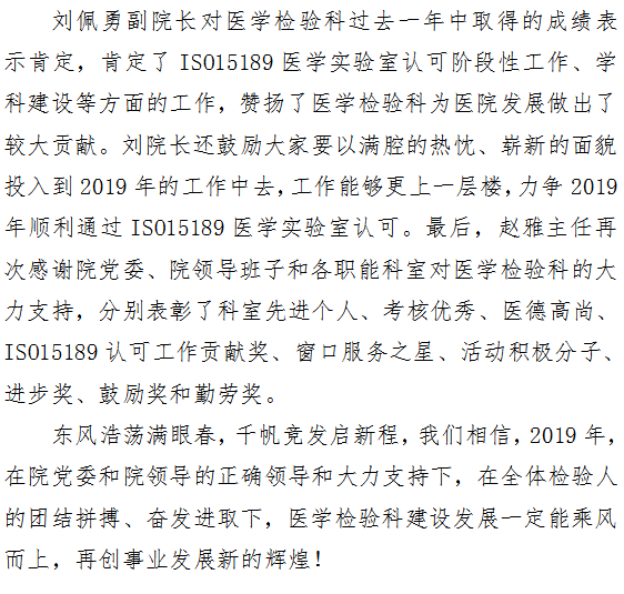 医学检验科召开2018年工作总结会议