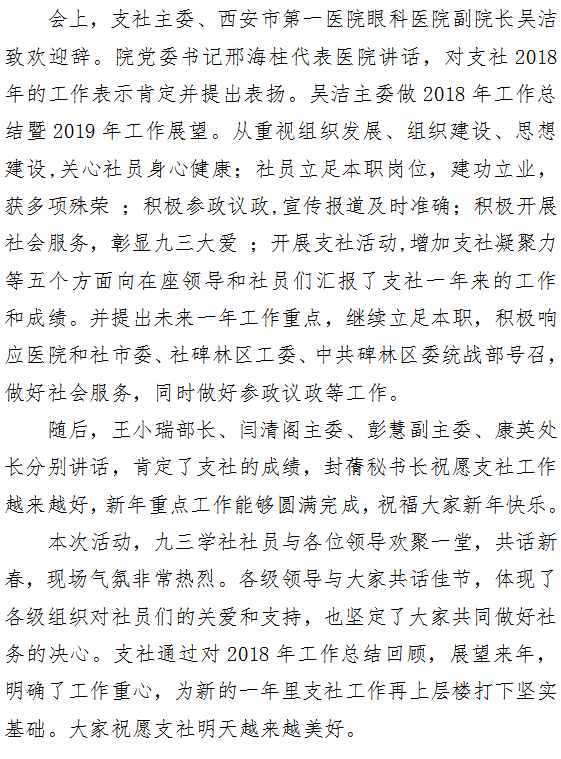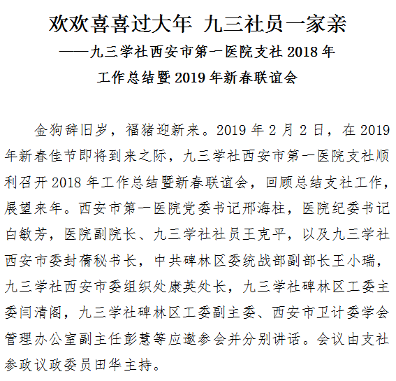 欢欢喜喜过大年 九三社员一家亲 ——九三学社探花av 支社2018年工作总结
