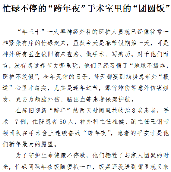 忙碌不停的“跨年夜”手术室里的“团圆饭”