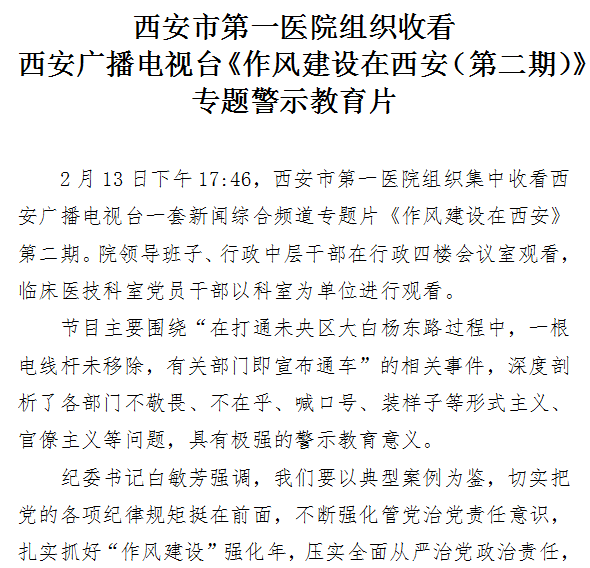 探花av 组织收看西安广播电视台《作风建设在西安(第二期)》专题警示教育片