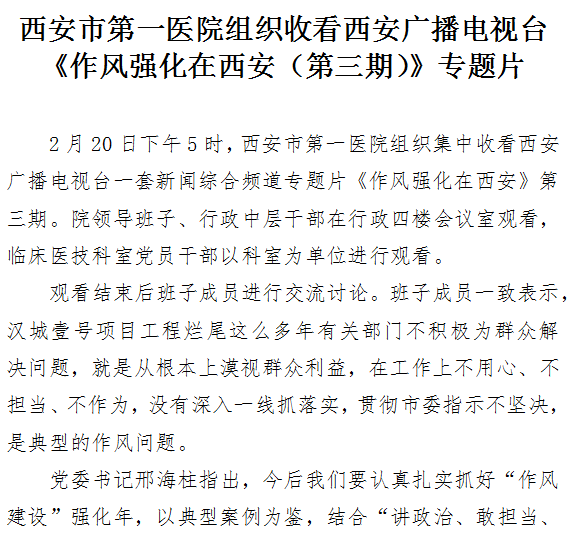 探花av 组织收看西安广播电视台《作风强化在西安(第三期)》专题片