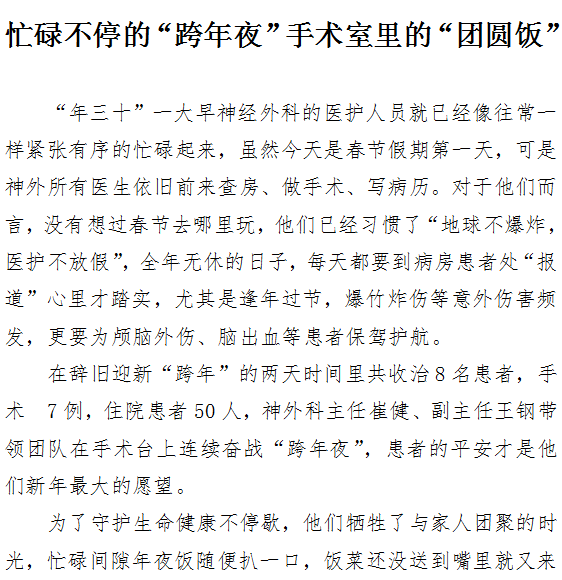 忙碌不停的“跨年夜”手术室里的“团圆饭”