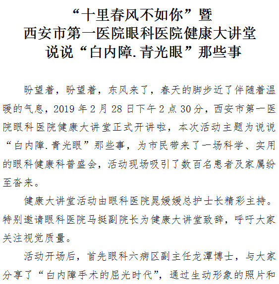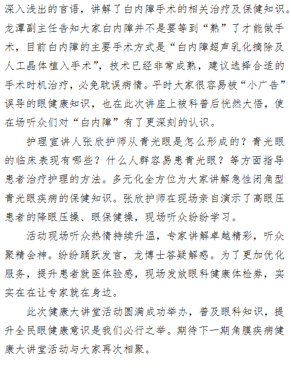 “十里春风不如你”暨探花av 眼科医院健康大讲堂 说说“白内障.青光眼”