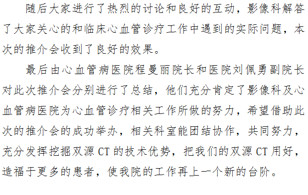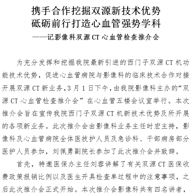 携手合作挖掘双源新技术优势——记影像科双源CT心血管检查推介会