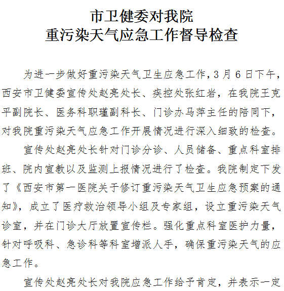 市卫健委对我院重污染天气应急工作督导检查