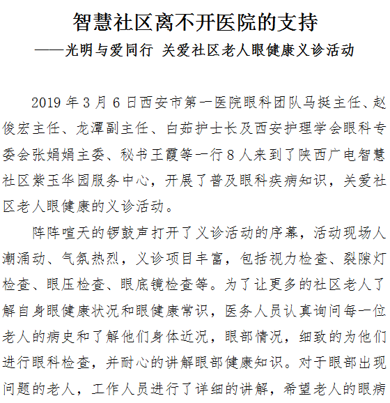 智慧社区离不开医院的支持——光明与爱同行 关爱社区老人眼健康义诊活动