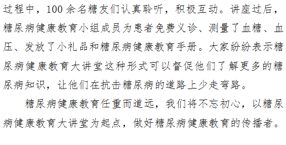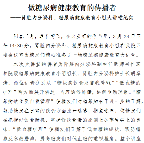 做糖尿病健康教育的传播者——肾脏内分泌科、糖尿病健康教育小组大讲堂纪实