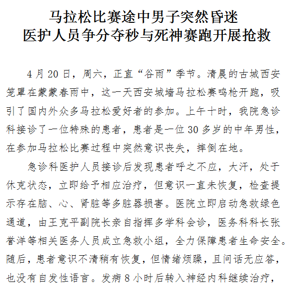 马拉松比赛途中男子突然昏迷 医护人员争分夺秒与死神赛跑开展抢救